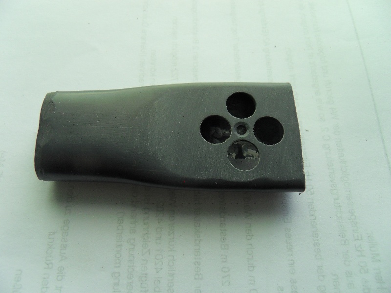 gestern bei dem sehr interessanten Helmtauchertreffen am Berndsteinsee hab ich den Russischen Zweischlauchregler "Ukraina" getestet. Bei meiner Schnellrestauration war kein Entenschnabelventil auftreibbar. Deswegen habe ich eine Abart des in USA käuflichen "duckbill eliminators" oder Lothars Variante, mit bei mir verfügbaren Materialien, hergestellt. Atmet sich sehr gut und ist von außen nicht sichtbar. Die Bilder sind selbsterklärend, PVC Rohr, warmverformt.