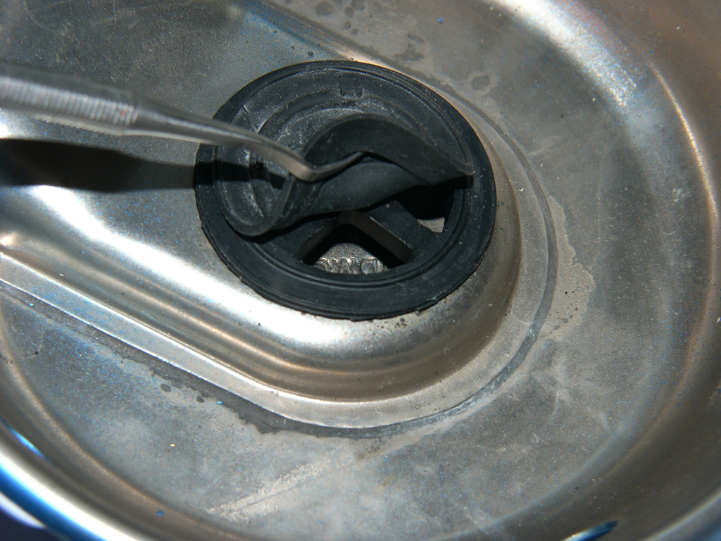 So sieht das Ausatemventil im blauen "PA 61/1" aus. Beim PA 60 dichtete die runde Scheibe wohl nicht gut genug ab. Deshalb setzte man sie beim Nachfolgemodell auf ein "Wagenrad" aus Gummi. Die abgetrennte Kammer für das Ausatemventil war wohl zu teuer. . . So wechselte man alsbald zum Entenschnabel.