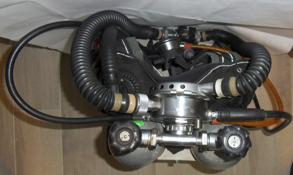 Dazu muss der Einatemstutzen nach Steuerbord und der Ausatemstutzen nach Backbord, und der MD-Schlauch geht schön zur Seite weg. Logo steht auch schief. Taucht sich prima, ist aber für Nostalgiker bähbäh.