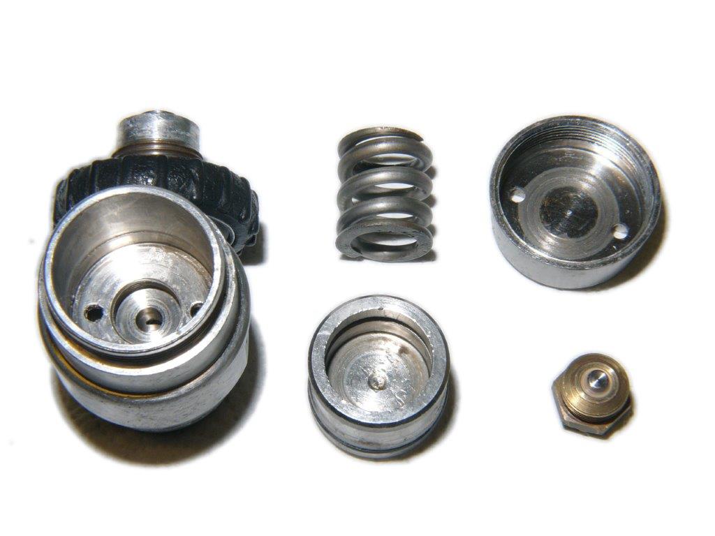 Am Wochenende habe ich für 16,50€ einen Secor 300 S ersteigert. Er war als Secor 200 gelistet. Der Regler weist kaum Gebrauchsspuren auf. Die erste Stufe wird komplett zerlegt und an der Drehbank außen auf "neu" überarbeitet. Deshalb muß der Anschluß erstmal weg. Die Innereien kommen ins Ultraschallbad. Die zweite Stufe kommt ebenfalls ins Wellneshotel. Der Secor 300 ist sehr wartungsarm, da gibt es fast nichts einzustellen. Ich suche noch einen neuen Mitteldruckschlauch. Ein neues Mundstück habe ich bereits. Es fehlt mir nur noch eine Membran und ein passendes Ausatemventil.