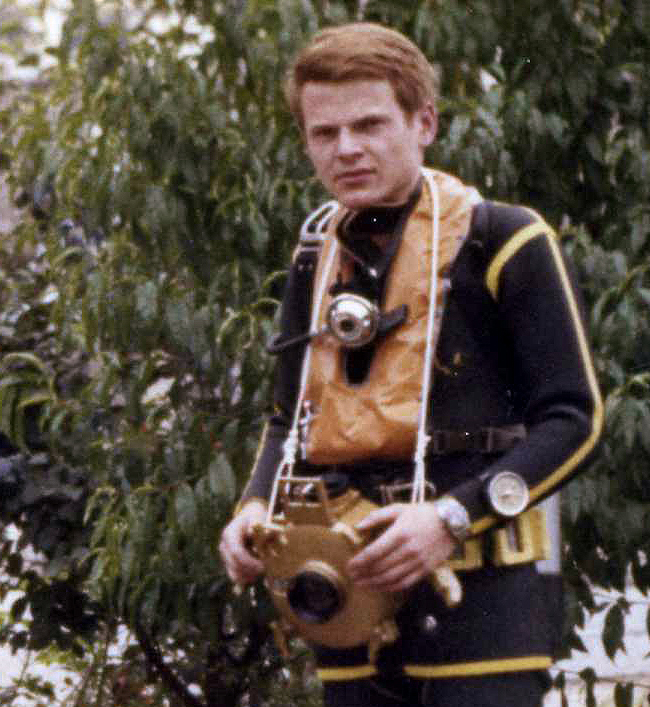 das war mein erster Atemregler, ein Nemrod Snark II Silver. Den habe ich zusammen mit einer Nemrod 10l- Flasche, einer Taucheruhr von Anker und dem Wilkie "Alarm" Tiefenmesser bei Neckermann für 550 DM gekauft. Das war Mitte der 60er Jahre. Am Tauchgerät war noch kein Finimeter sondern nur eine Reserveschaltung. Die Bleigewichte sind natürlich selbst gegossen. Die Unterwasserkamera wurde auch bei Quelle angeboten, es gab sie irgendwann für 170 DM zum Schnäppchenpreis.