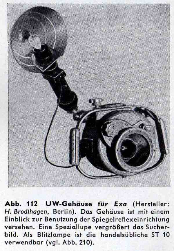 ich habe hier zwei interessante Berichte über einige serienmäßige Unterwassergehäuse und Eigenbauten für die DDR Spiegelreflexkameras "Exa" und "Exakta" in Netz gefunden. Hier: http://www.ihagee.org/AT/uw1.pdf und http://www.ihagee.org/AT/uw2.pdf