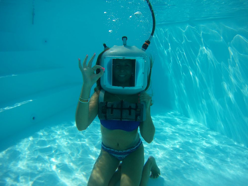 Als Letztes, ihr müsst euch auch Gedanken über das Gewicht machen! Der Anzug muss so voluminös sein, dass der Taucher aus der Blase im Anzug atmen kann, das wird einen beträchtlichen Auftrieb erzeugen. Ganz ohne Ballast wird das nicht gehen. Leider fehlt auf den gezeigten Bildern dazu jeder Hinweis - oder ich kann ihn nicht erkennen.