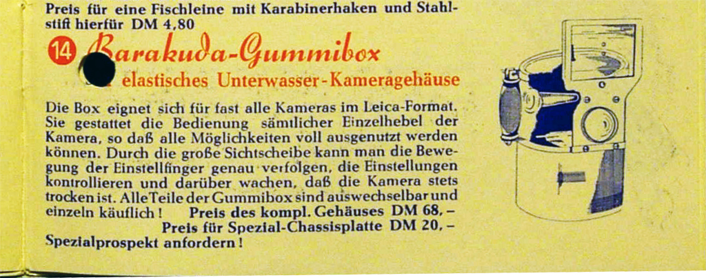 von welchem Hersteller die Gummibox stammt werde ich noch ergründen, anbei aber zunächst weitere Infos aus dem Barakuda Katalog 1958 sowie aus dem erwähnten Infoblatt der Firma Barakuda.