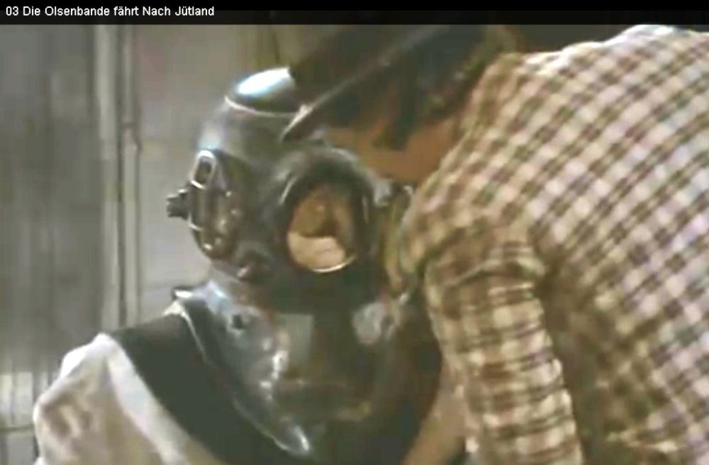 zur Auflockerung, in der DDR waren die Olsenbandefilme ja Kult und kommen derzeit digital aufbereitet immer mal im Fernsehen. Im Film "Die Olsenbande fährt nach Jütland" taucht Egon in deutschen Bunkern mit einer alten Helmtauchausrüstung. Was benutzt er denn da? Tip: Den gesamten Film gibt es auf Youtube.