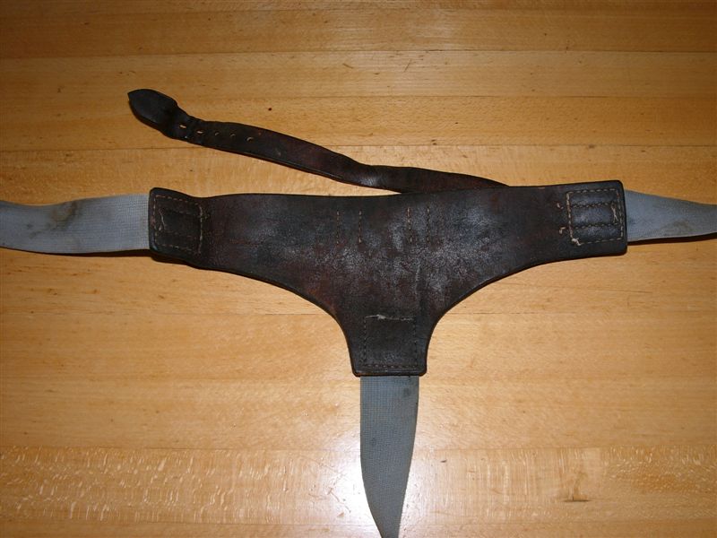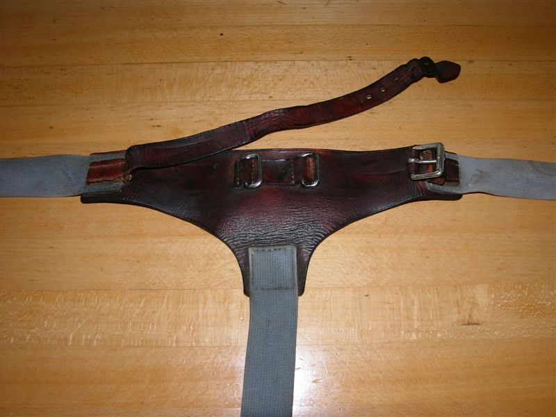 Tragevorrichtung diente. In die seitlichen Bügel wurde ebenfalls die Tragevorrichtung für den Bauchgurt mit Lederschlaufen befestigt.