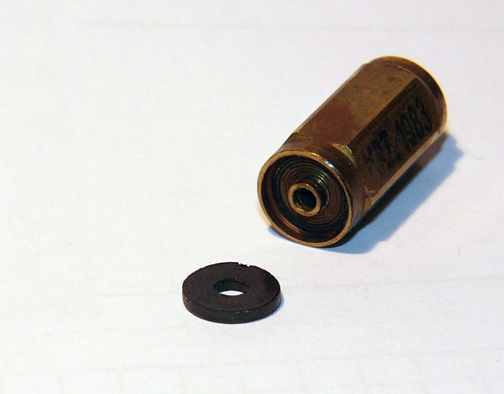 Über Nacht hab ich das Ventil mit nicht gezogener Reserve offen gelassen. Der Druck ist nicht angestiegen : ) Es schleicht also keine Luft an den Teflondichtungen vorbei. Teflon hat noch den Vorteil, daß man die Dichtscheiben in die Schließbolzen einpressen kann. . . .
