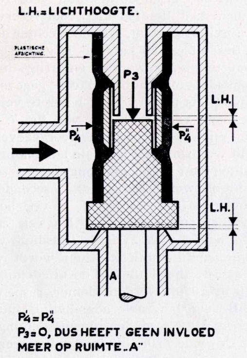 Die „Lichthoogtje“-Darstellung zeigt das System unter Druck (P4). Die runde Stützfeder ist keine Stützfeder sondern eine zylindrische Büchse, die zwei Funktionen hat: