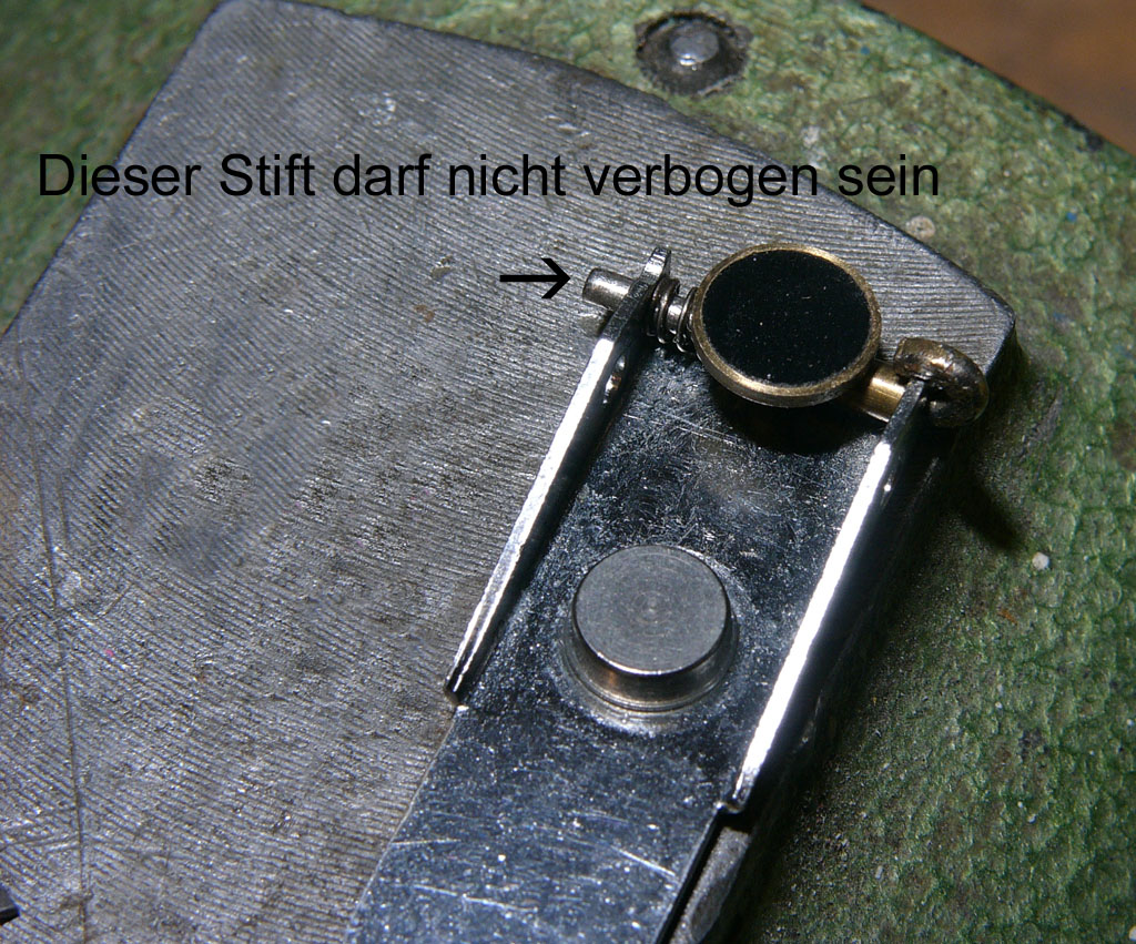 Nochmal zum PA61/2- oder Duomat-Ventilsitz der zweiten Stufe. Am unteren Ende des Hebels sitzt ein rundes bewegliches Messingteil mit Gummidichtscheibe, welches auf die Kraterschraube drückt. Manchmal blasen die Automaten hier ab und man findet nicht den Grund dafür. Beim Warten eines PA61/2, habe ich bemerkt, daß wenn der Stift, der das Messingdichtteil hält, nur ein wenig verbogen ist, die Dichtscheibe schief auf dem Krater sitzt und somit die Dichtwirkung nichtmehr gegeben ist. Nach dem Geraderichten blies der Automat nichtmehr ab.