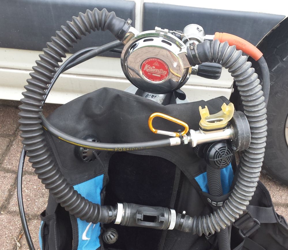 Den Poseidon würde ich mit gerne als Regler fürs Reservegerät herrichten. Aber nur die zweite Stufe, als erste Stufe kommt jene von Däger mit integriertem Druckmesser dran.