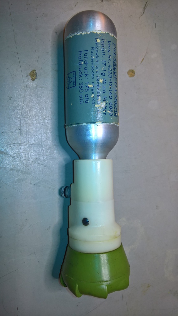 Aus den Tiefen meines Keller kommen jetzt nach meinem Umzug langsam viele verloren geglaubte Schätzchen wieder ans Tageslicht, darunter auch 2 TSK12, die ursprünglich mal für die BW gebaut wurden. Ich habe dann sogar den Koffer mit der Fülleinrichtung gefunden, sehr deutsch mit Plombenzange und Zubehör um die gefüllten Flaschen eindeutig zu kennzeichnen!