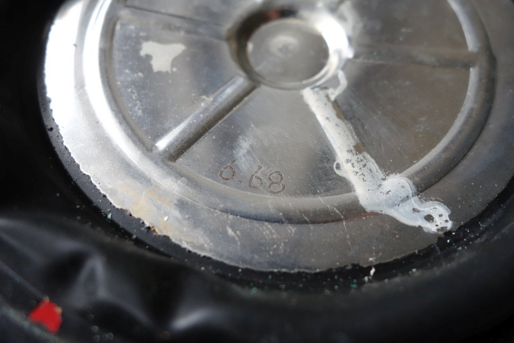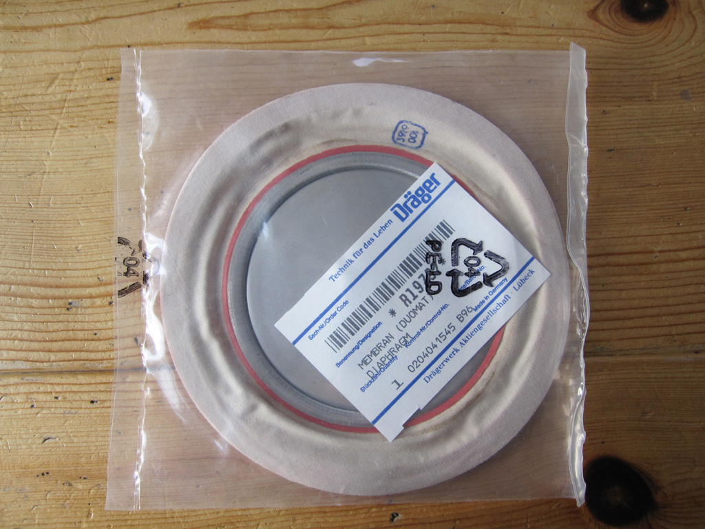 Ich hab gerade einen, meiner ersten, ziemlich gut erhaltenen und noch original verplompten Dräger PA 61/2 aufgemacht. Die Membran sah noch relativ gut aus und es ist nicht die Klemmvariante sondern, meiner Meinung nach, eine aufvulkanisierte Metallscheibe, die Membran ist auch aus reinem Gummi (oder ist doch ein ganz dünnes Gewebe drin?). Vermutlich Baujahr 1966 die 6/68 eingebaut wurde. Ist das so bekannt?