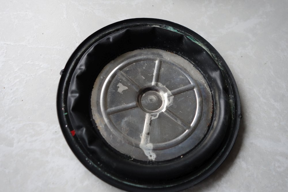 Ein Zerlegen nach dem (sehr sehr kurzen TG) ergab dann, dass sich die im Silikon eingeklebte GFK-Scheibe komplett aus der Membran herausgelöst hatte und die ganze Hebelmechanik des Reglers blockierte! Nur eben der Mitteldruck für den Octopus war nicht beeinträchtigt.
