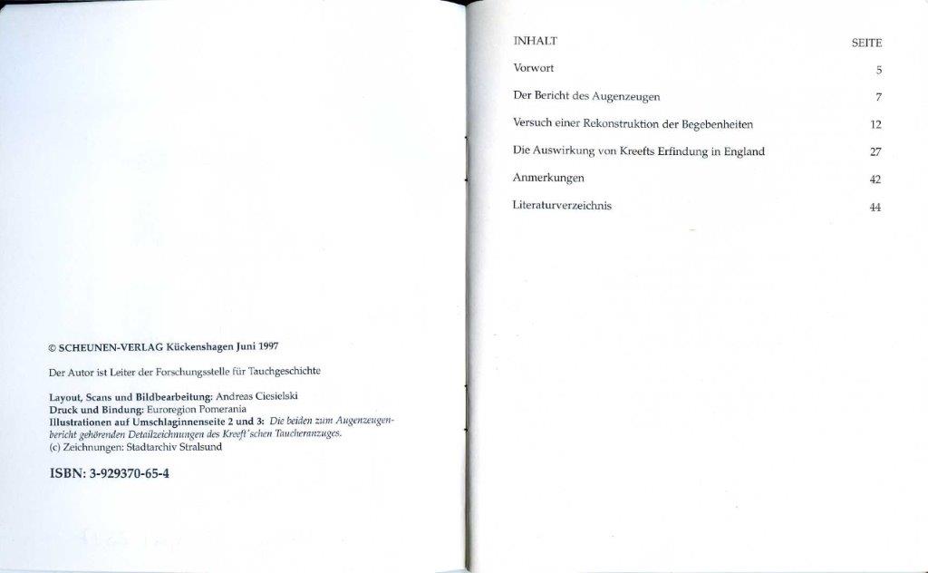 SPETER, Max. Die “Buss(e)ru(h)n” - Gewand-Taucher-Maschine Peter Kreefts in Barth (1800–1805). Ein verschollener BlasebalgFrischluft-Tauchapparat. 3 p., 4 fig. (Kreeft-Broschüre, Dräger-Hefte) Lübeck: 1937.