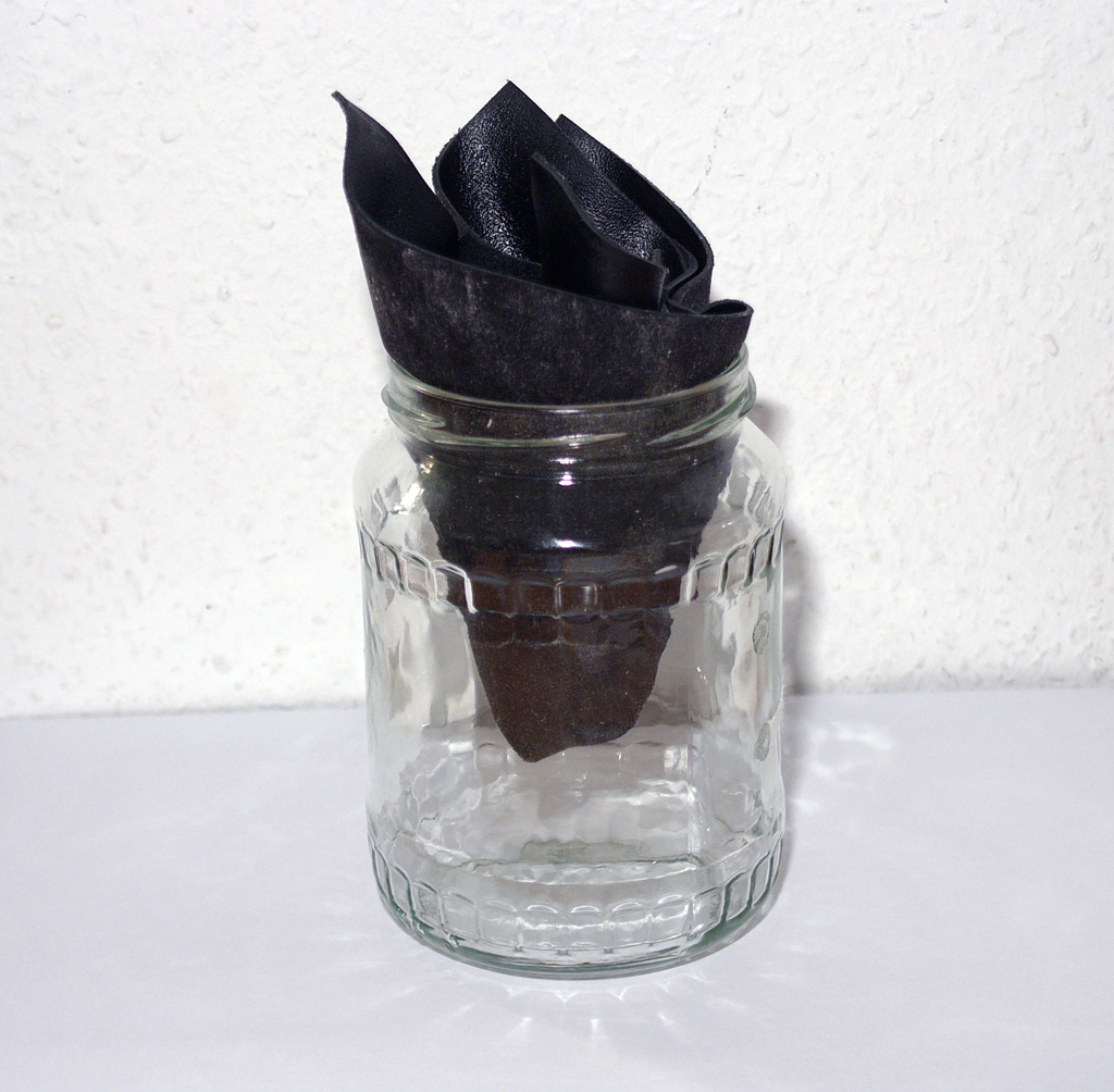 Nach 36 Stunden ist das Leder auf der rauen Seite kaum merklich feucht, es hängen keine Wassertropfen dran.