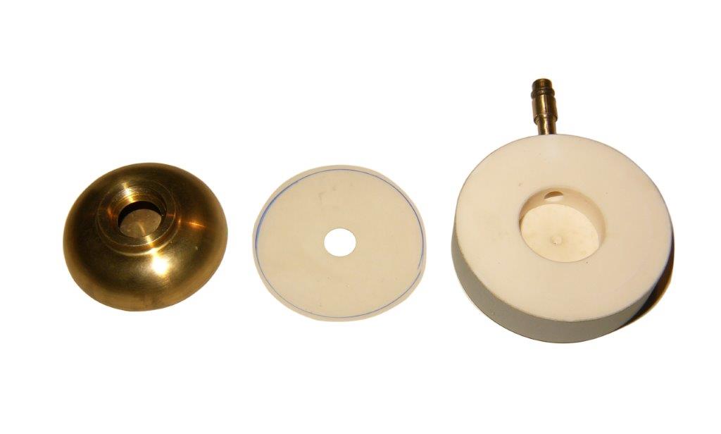 Vorrichtung zur Drückprüfung der Membran im Helmtrichter links