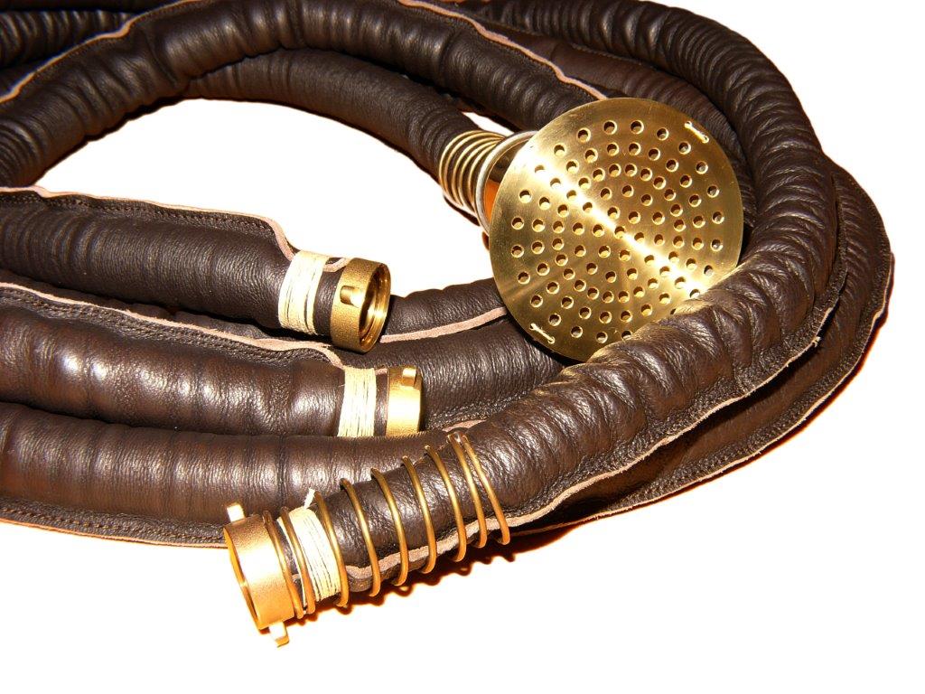Lederschlauch unter 1 bar Druck.  Erstaunlicherweise ist er über längere Strecken bereits dicht. . .