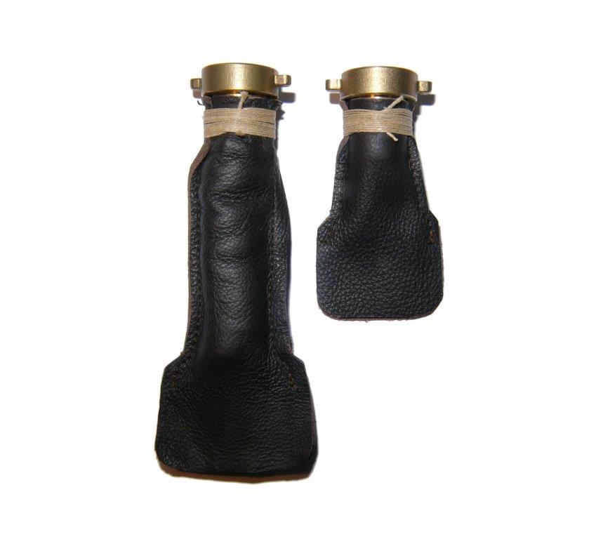 Blick auf den Lufteinlaß mit Rückschlagventil.  Das einfache Lederventil funktioniert bestens. Das ist natürlich lageabhängig.  Der Kamerablitz zeichnet das helle Leder fast weiß.