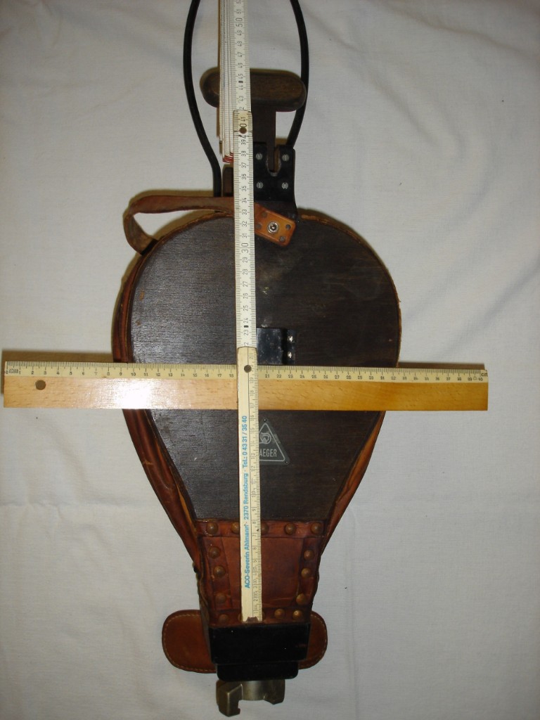 - Zwei Bleigurte mit je 8 kg Gewicht. Sie sollen kreuzweise wie Achselgewichte getragen werden. Schnellabwurfschnallen nach vorn. Die beiden Bleisandalen wiegen je 10 kg. Das Gewicht an den Gurten muß im Versuch ermittelt werden.