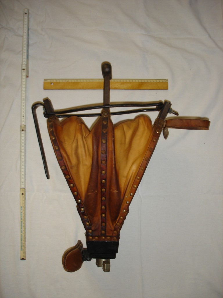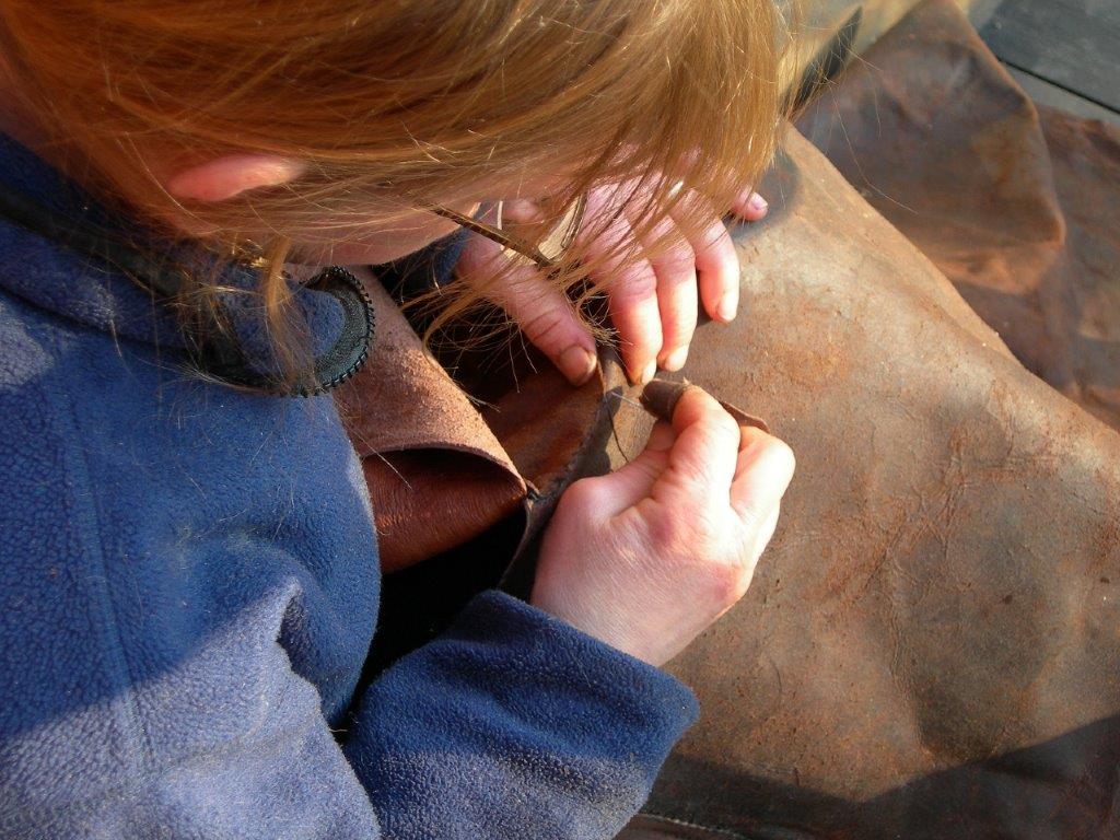 Die Abbindung muss mit zwei Helfern erfolgen die jeweils in zwei entgegengesetzte Richtungen ziehen können erfolgen, allein geht das schlecht. Die Abbindung sollte ähnlich eines Takeling mit zwei, drei Windungen erfolgen bevor ein klacher Knoten, der nicht direkt auf dem Leder liegen sollte, des Ganze verbindet.