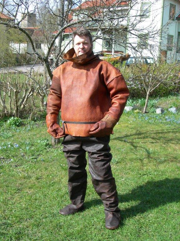 Lars Gustafson aus Schweden hat Fotos von deren Lederanzug für Glockentaucher geschickt.