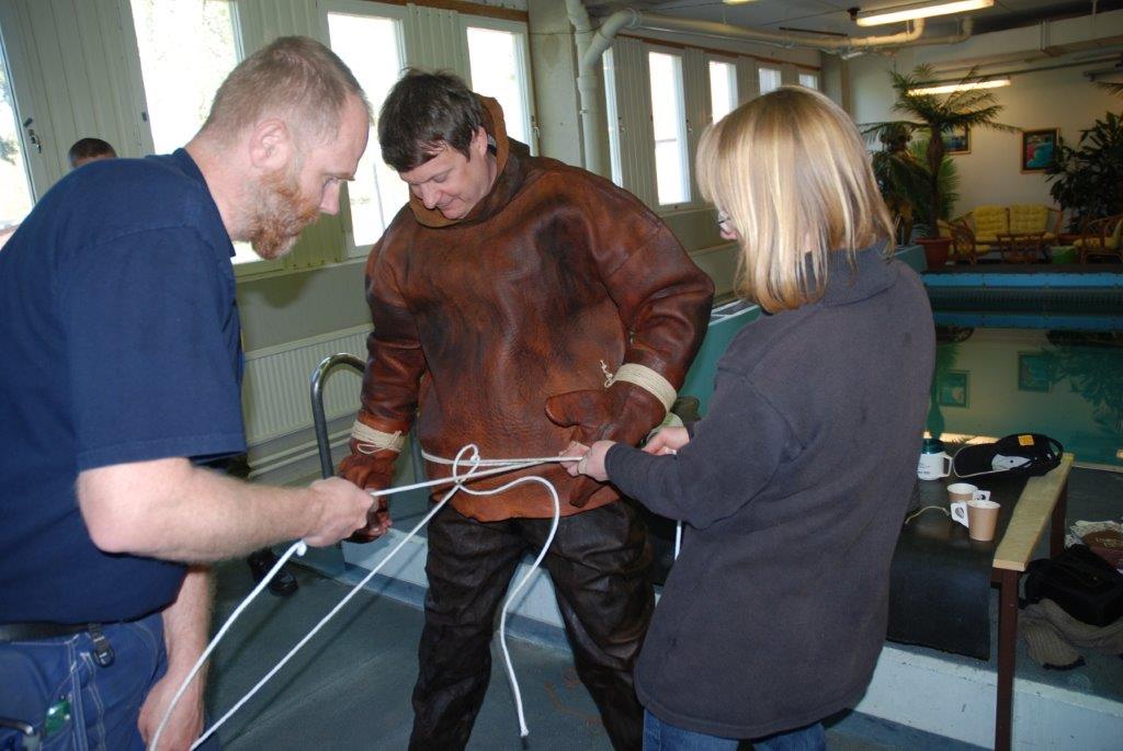 As I say the jacket became very good and the trousers not, so it became the most expensive wet suit ever! BUT the experiences gained shows that even if they got a bit wet, they could have been dry with a very successfully sewn suit!, they could still easily survive up to 30 min in our cold waters, as they explain in the documents.