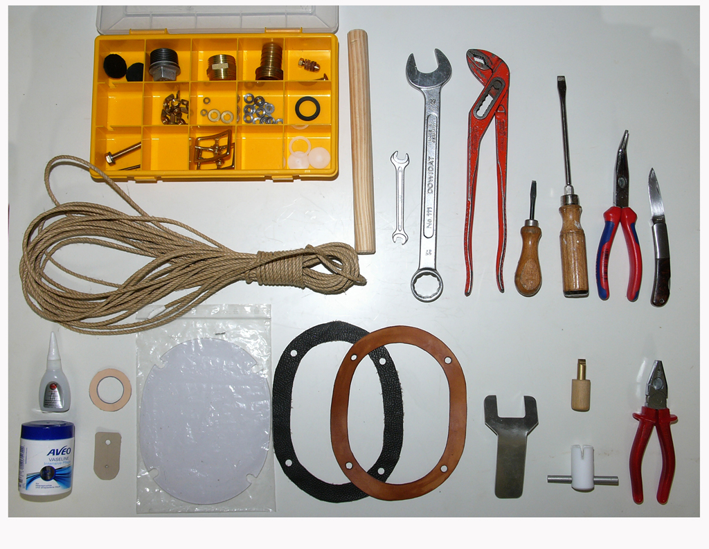 - Werkzeug: je 1 Gabelschlüssel 10 und 27 mm, Schraubenzieher 10 x 1,5 mm. Diese Werkzeuge würden nur gebraucht, wenn Umbauten an den Schlauchanschlüssen, am Helmfenster oder dem Luftablaß notwendig werden sollten. Davon ist nicht auszugehen.