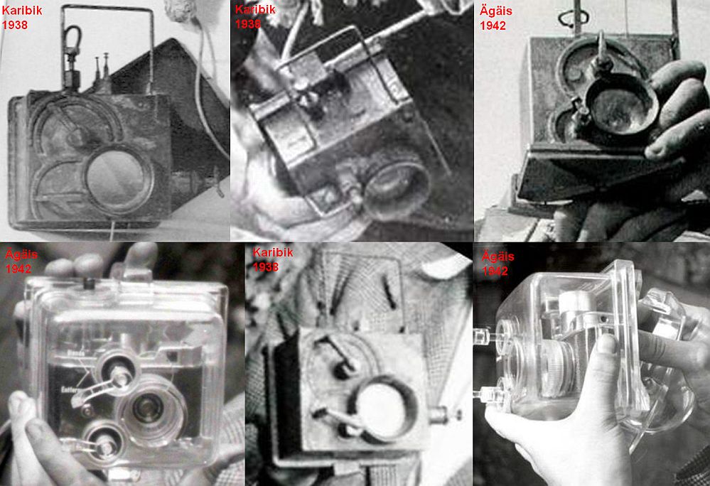 Die Kamera ähnelt tatsächlich denen von H. Hass verwendeten Typen. Ist aber meiner Meinung nach eine (jungere?) Konstruktion die kaum im Wasser war. Hier mal Kameras die Hass gesichert verwendet hat.