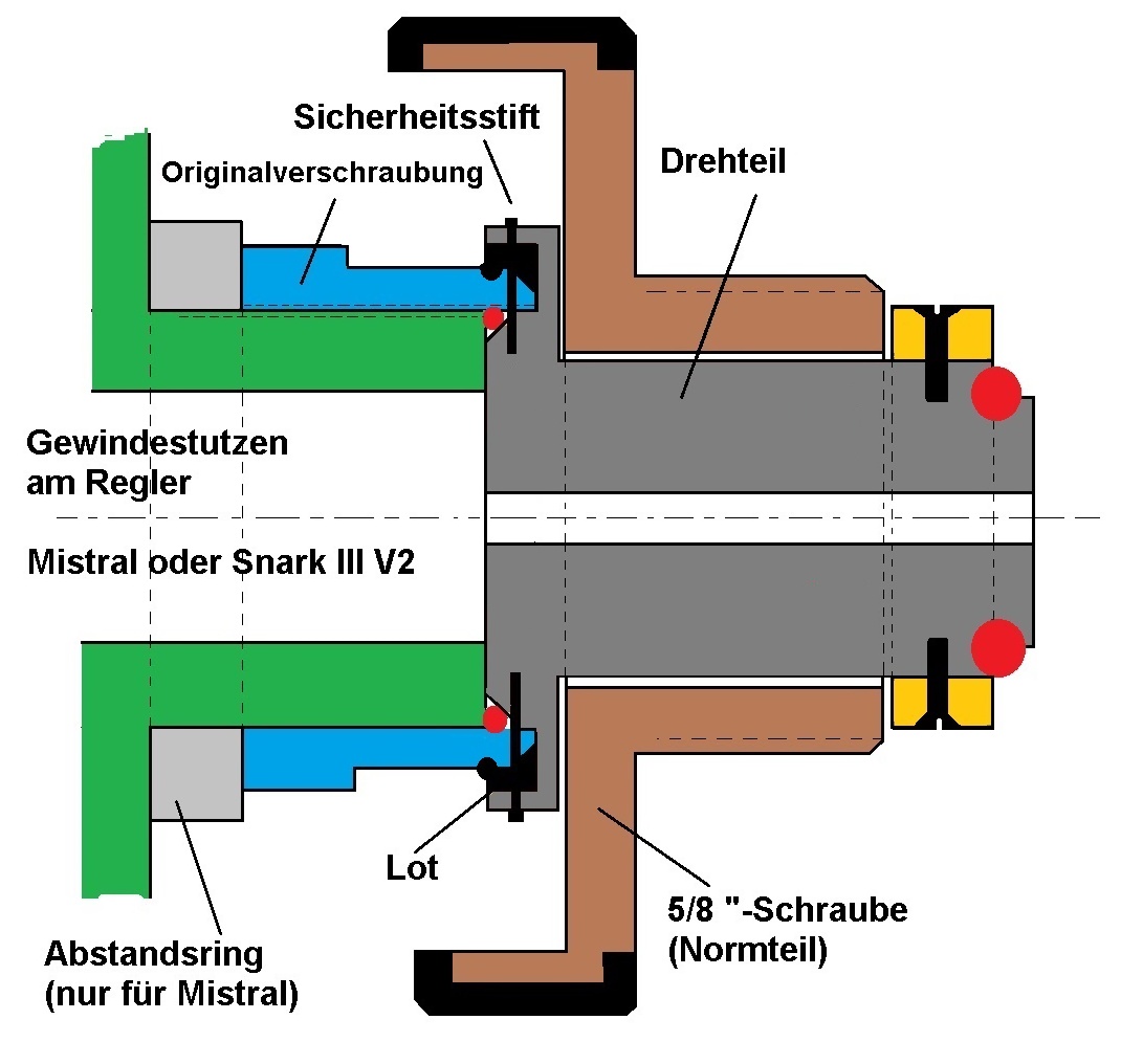 ich hab' mir mal ausgedacht, wie man auf Basis der Halteschraube für den INT-Bügel (damit man nicht dieses feine Gewinde drehen muss) einen DIN-Adapter für den Mistral und den Snark III V2 machen könnte.
