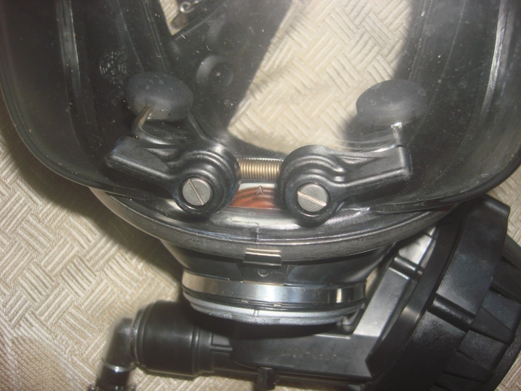 Die Dräger Vollgesichtsmaske verfügt über keine Vorrichtung für den Druckausgleich. Man muß also gähnen oder schlucken, das funktioniert aber nicht immer wie gewünscht.