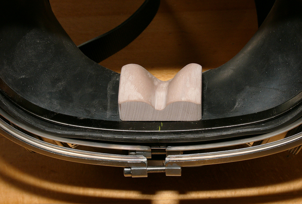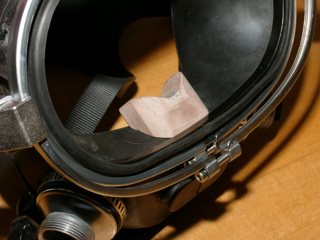 es gibt nichts, daß sich nicht verbessern lässt. Den ganzen Tag habe ich damit verbracht den Nasenzuhalter zu optimieren. Schwachstelle war die Trennwand, die nach unten beim Hochdrücken der Maske nachgab. Selbst ein Gipsabdruck der unteren Nase hat nicht geholfen. Der hat sich als Denkfehler herausgestellt, denn der Abguß war die undichteste Variante von allen. So kam ich auf die Lösung: der Zuhalter muß der Form der Nase entsprechen, wenn sie abgedichtet ist.
