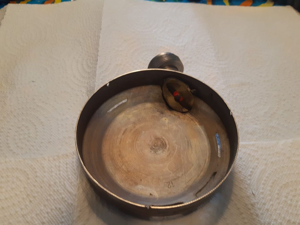 hier mal ein Bild nach dem Essigwasser Ultraschall. Die inneren Teile waren nicht sehr dick vernickelt. Teilweise guckt nun das Messing vor.