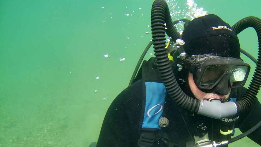 Beim Tauchen darf man sich nicht auf die Gegenseite drehen, sonst blubberts wieder ab.