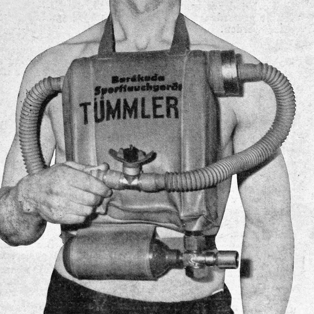 Wenn man sich mit der Tauchhistorie beschäftigt, hat man immer mehrere „Baustellen“. U.a. das Sporttauch-Kreislaufgerät „Tümmler“. Eine Konstruktion von Wilhelm Tamm, Dipl.Ing.. Er arbeitete zeitweise mit den Drägerwerken zusammen. Dieses Gerät wurde 1953 „von einer Berliner Firma“ gebaut und von der „Barakuda-Gesellschaft“ vertrieben. Die Einzelteile (Atemsack, Schläuche, Metalteile) kaufte Barakuda getrennt ein. Die Sauerstoffflasche stammte aus Heeresbeständen. Einkaufspreis DM 4,- / Stück. Innerhalb des Jahres 1953 stellte man 6 – 7 Geräte täglich her. Der (bereits vorbestellte) Lagerbestand in diesen Monaten belief sich auf ca. 100 Stück. Die Nachfrage war groß. Der Herstellungspreis betrug DM 50,-, der Endverkaufspreis DM 175,-.