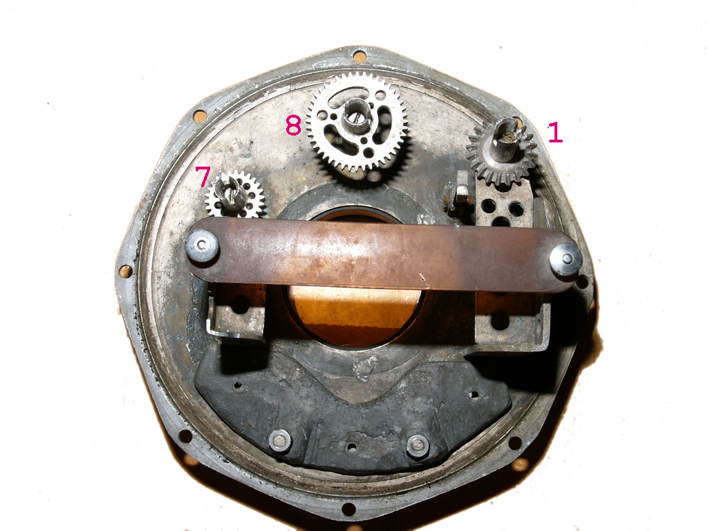 Auf der Innenseite ist zu erkennen, dass die Wellendurchführung für den Verschluss (2) anders eingelötet wurde. Bei 1,8 &7, wurde außenherum größzügiger Weichlot verteilt.