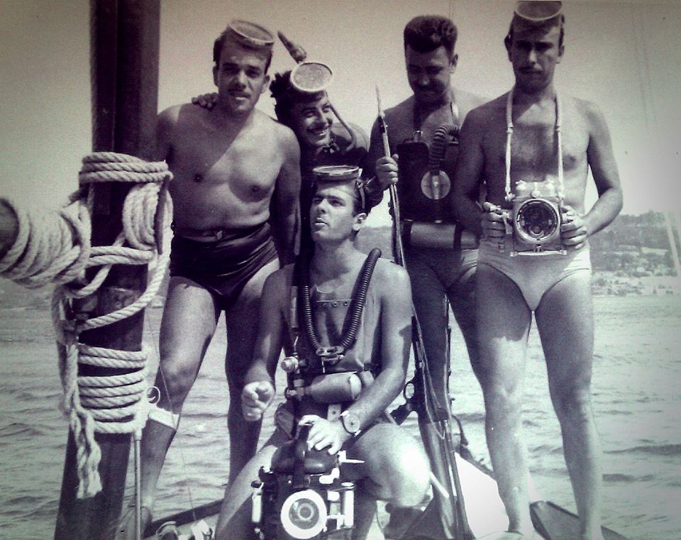 Er schrieb mir: "Der Mann mit der Bolex und O2 Gerät ist Gerhard Binanzer. Ganz rechts steht Racai Ölcen, Präsident des Istanbulers Tauch Club. Gegründet 1.1.1958. Im Delphin Nr. 6 von 1960 ist ein Artikel von Gerhard Binanzer mit Bild."