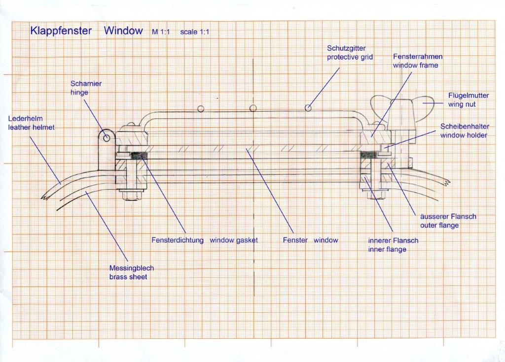4. dem Verweis von Franz, dass sich seine Zeichnungen sehr am Vorbild orientieren, kann ich so nicht ganz folgen. statt der zu öffnenden Frontscheibe, favorisiere ich immer noch einen verdeckten Trockenreißverschluß am hinteren Teil der Anzughaube. das ist eine effektivere Rettungsmaßnahme für den E-Fall, die zudem weniger Schwachstellen aufweist und unseren KTA dem zeitgenössischem Original ähnlicher aussehen lassen würde.