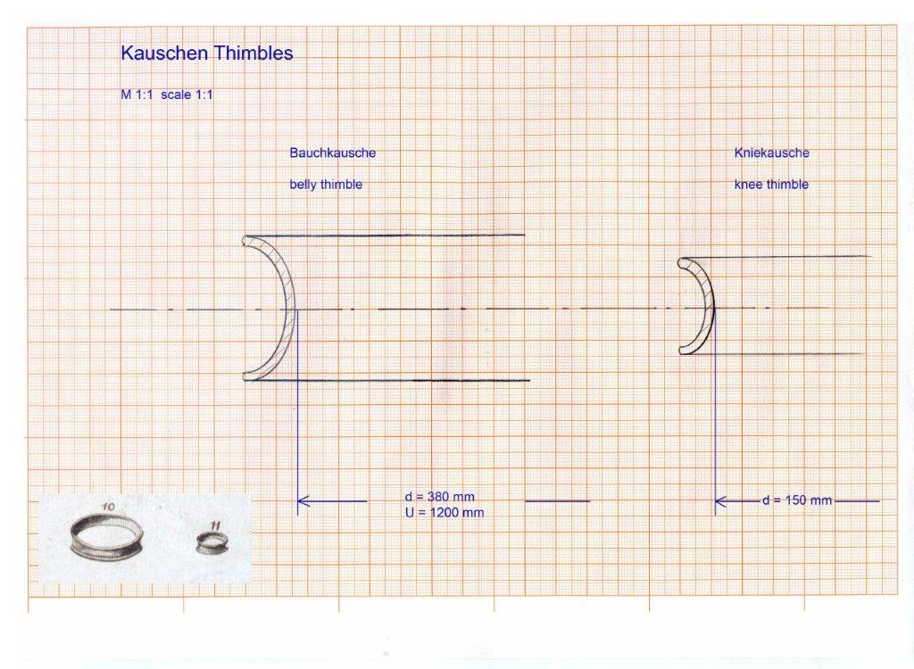die Bauchkausche definiert den unteren Umfang der Lederjacke. Die Lederjacke kann nicht größer sein, sonst wirft sie an der Kausche beim Zubinden Falten. Ich denke auch, daß man hineinschlüpfen kann wenn man die Arme hochstreckt. Wir müssen das ausprobieren und die Durchmesser dann festlegen.
