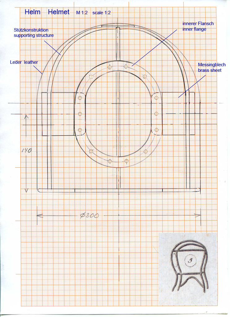 in der Helmzeichnung sind mir die Schultern zu schmal geraten, ich habe die Zeichnung ausgetauscht. Den Helmdurchmesser legen wir nach deinen Versuchen fest.