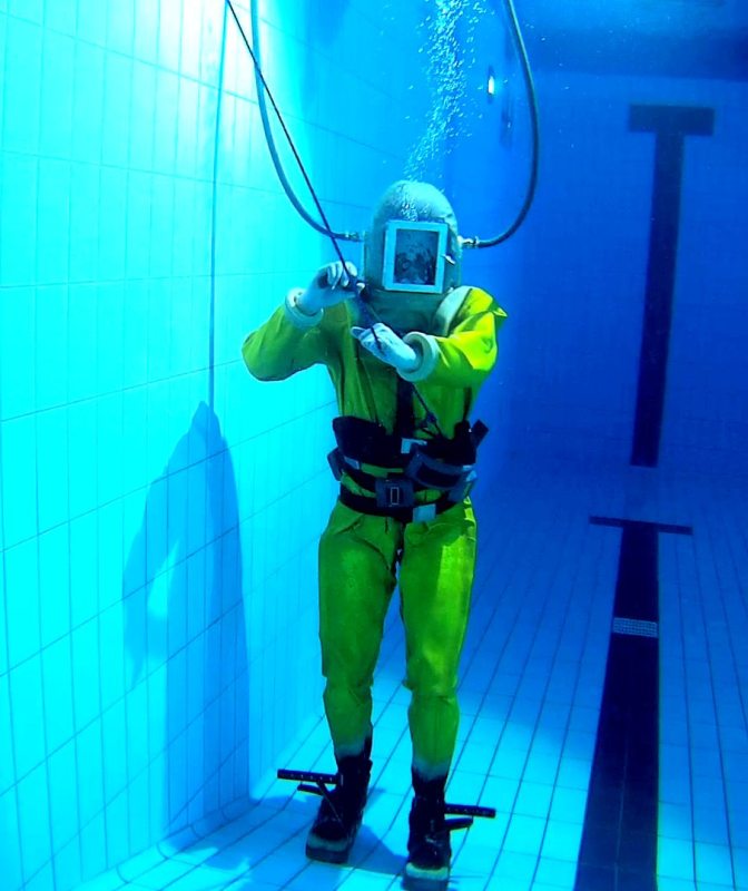 das liest sich ja spannend .-) Aus eigener (unangenehmer) Erfahrung, kann ich euch sagen, dass es nicht reicht, nur den Helm mit Luft zu fluten. Am Ende braucht der Taucher sowas wie eine Gegenlunge, d.h. es muss eine gewisse Blase geben, aus der der Taucher atmen kann. Meinen DM220/2 Anzug fülle ich ja nun ziemlich aus, und ich habe bei meinem letzten Tauchgang mit jedem Atemzug den Anzug in den Helm "hinein geatmet" Das ist echt unangenehm!