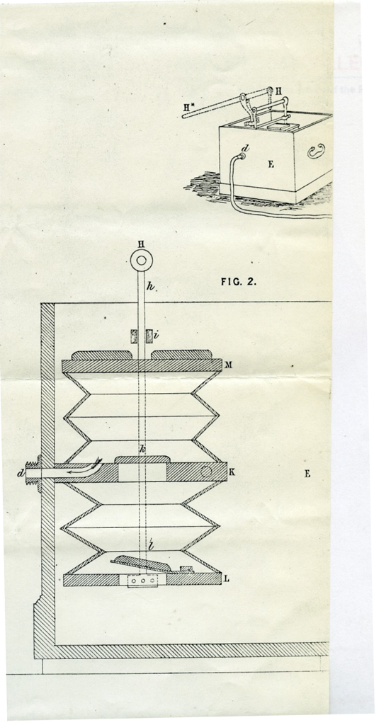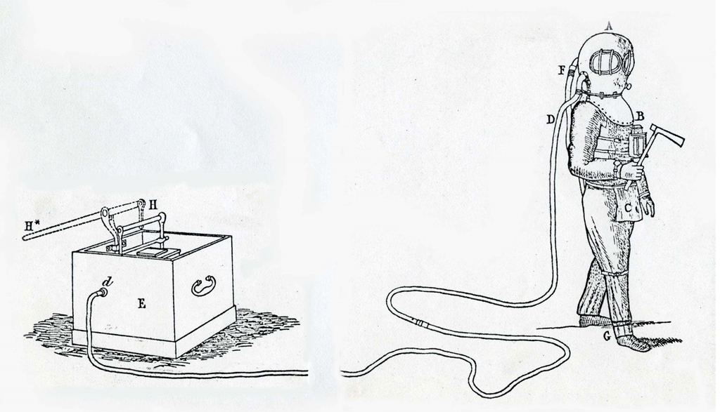 Schaut mal, hier die Patentzeichnungen zum Blasebalg von Deane für seinen Feuerwehrhelm