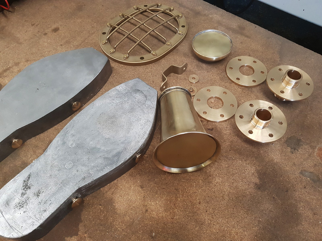 Provisorisch zusammengebauter Helm. Die Messingschrauben sind bestellt, andere Kleinteile in Arbeit.