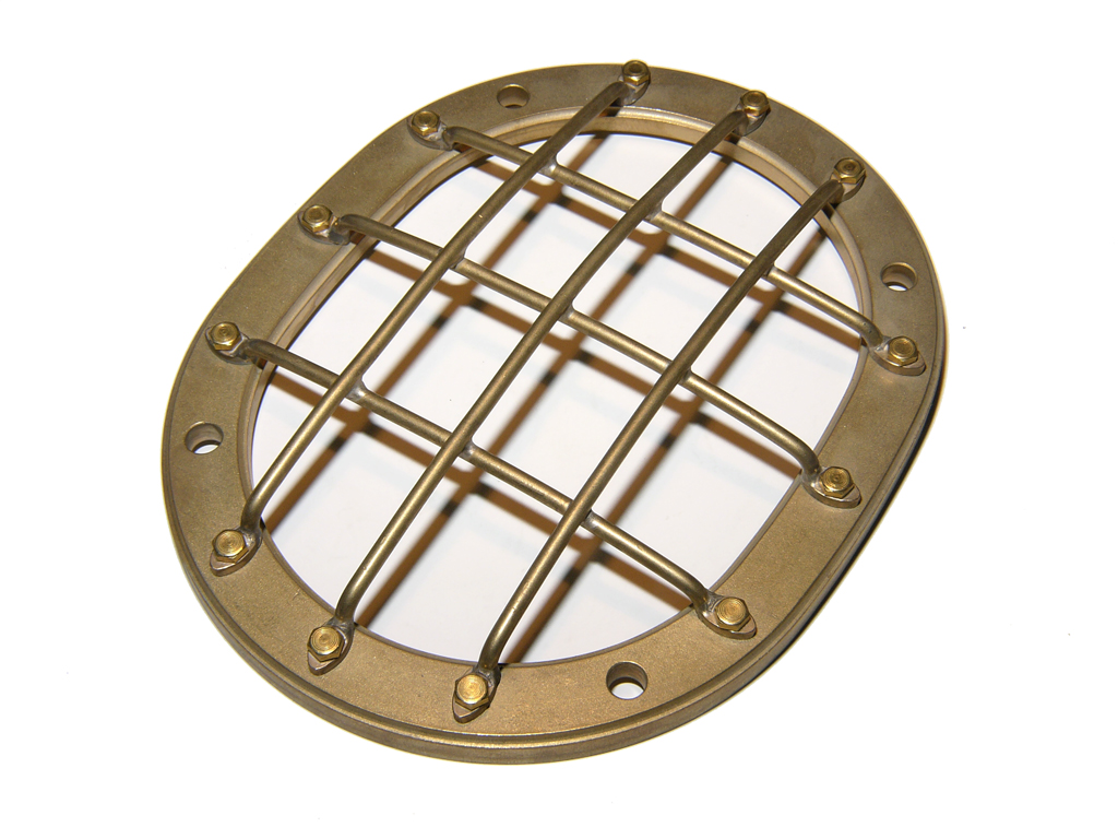 Um die empfindlichen Membranen während der Tauchversuche vor Beschädigung zu schützen, wurden sie mit Lochblechen abgedeckt. Man hätte auch eng stehende Gitterstäbe ähnlich dem Helmfenster verwenden können. Das wäre recht aufwändig. Die Lochbleche sind eine einfache und damit naheliegende Lösung.