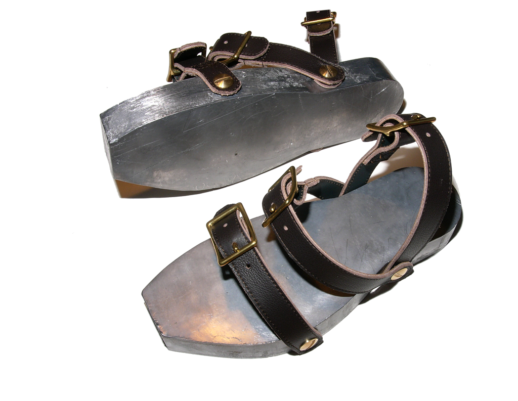 An den Sandalen werden noch die äußeren Kannten gebrochen, sie verformen sich sonst zu leicht. Leder- und Bleidichtungen müssen noch gemacht werden. Es dauert einige Tage bis alles zusammengebaut ist. Wichtige Teile müssen geprüft und gegebenenfalls verbessert werden, das braucht seine Zeit.