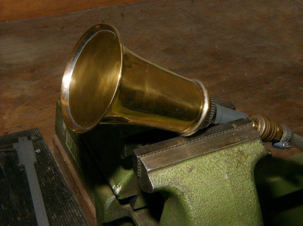 Schalltrichter, die beiden Membranen sind aus 0,2 mm Messingblech geschnitten und eingelötet.