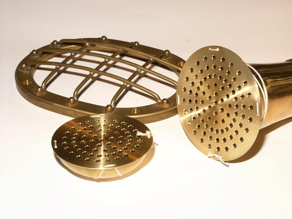 Um die empfindlichen Membranen während der Tauchversuche vor Beschädigung zu schützen, wurden sie mit Lochblechen abgedeckt.  Man hätte auch eng stehende Gitterstäbe ähnlich dem Helmfenster verwenden können. Das wäre recht aufwändig.  Die Lochbleche sind eine einfache und damit naheliegende Lösung.