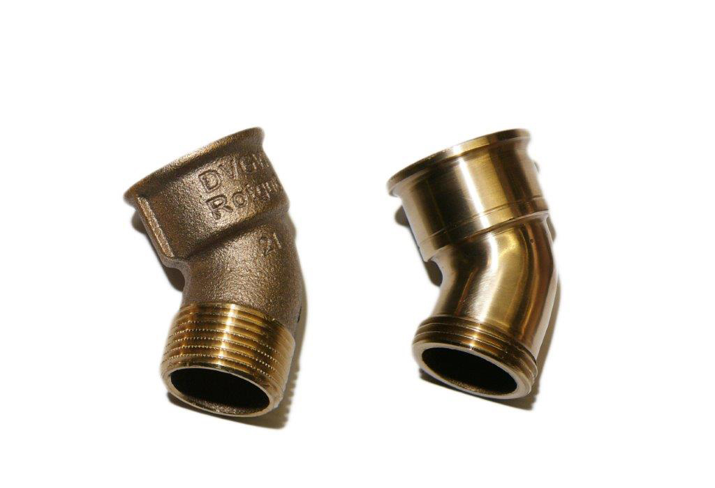 Der Anschlußwinkel aus Rotguß für den Luftablaß:  vorher – nachher