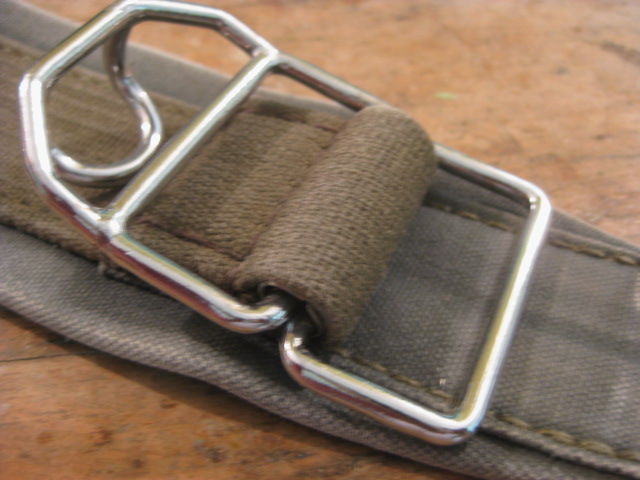 Hier der Verschluß des Bauchgurtes. Die Viereckringe stammen auch aus Beschlägen der alten Pressluftatmer- hier aus den Schgultergurten asusgebaut.