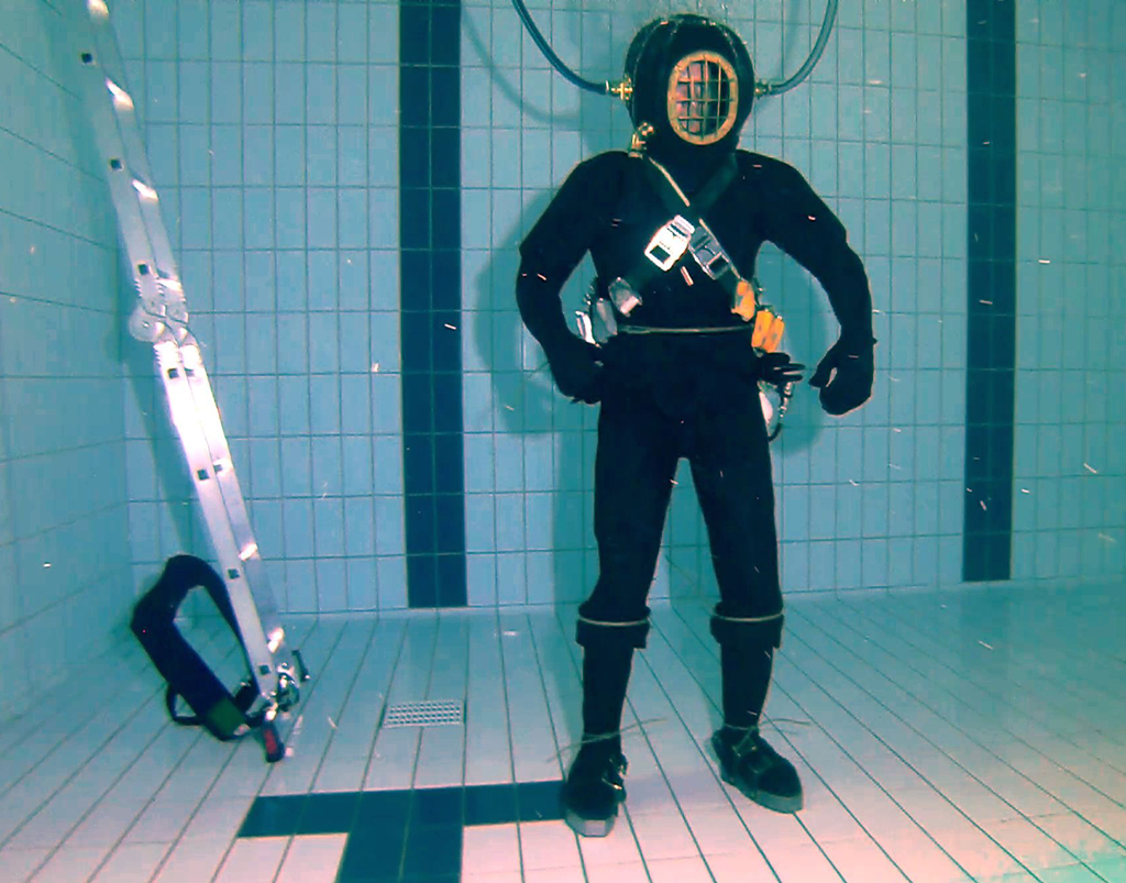 Beim Eintauchen ins Wasser spürte ich sofort Wasser in die Beine einlaufen, es stieg bis zur Hüfte. Aber als es dann die Luftblase verdrängte, war das vorbei. Auch hatte ich das Gefühl, dass über die Kopfhaube Luft entwich, wie viel kann ich nicht sagen.