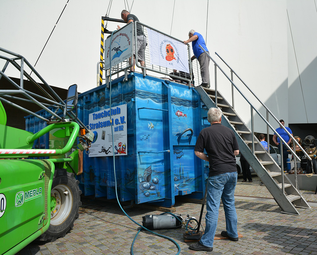 Sicherungstaucher: auch „Vorführer von Sporttauchertechnik“ vom Tauchclub Stralsund Frank Strebelow und Jonas Stuth. Berufstaucher Detlef Gerstenberg.